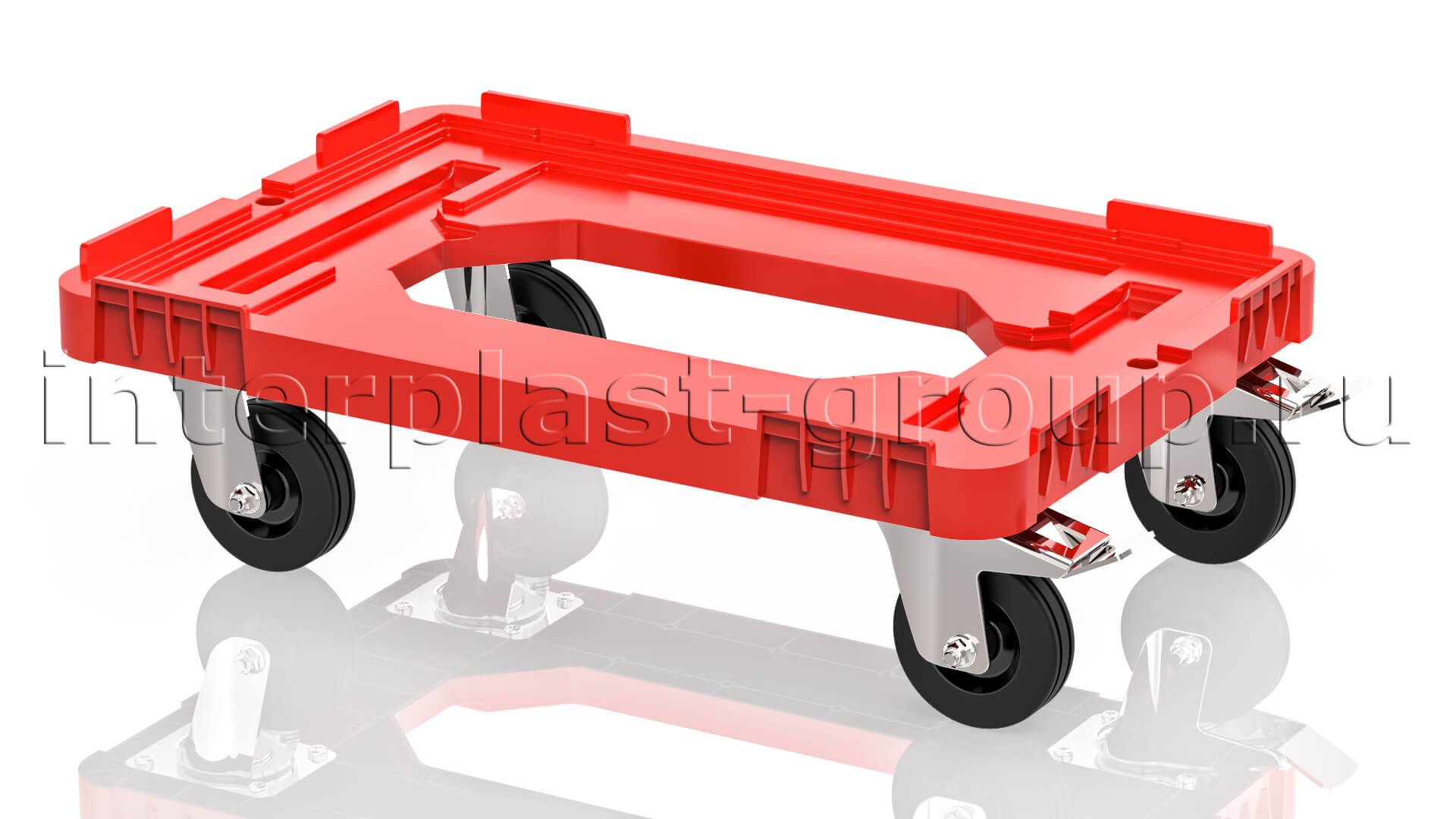 Тележка пластиковая с отверстием 2 колеса с тормозом красная в Сыктывкаре